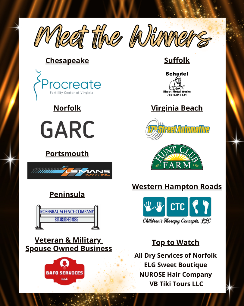 The Small Business of the Year Awards celebrates the critical contributions of small businesses and entrepreneurs across the Hampton Roads region!