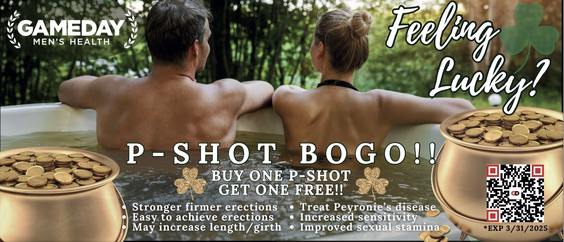 Looking to enhance your performance and boost confidence? Take advantage of our limited-time offer at Gameday Men's Health! Get **2 P-Shots for the price of 1**!
