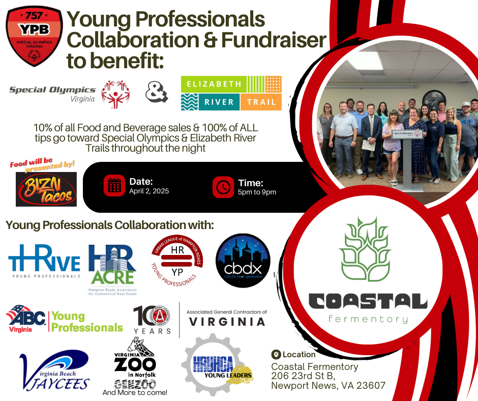 Join tHRive, a program of the Hampton Roads Chamber, as we connect with eight other young professional organizations from Hampton Roads to support our Organization of the Year, Elizabeth River Trail!